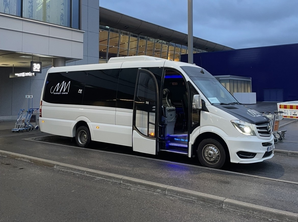 Minibussit pienille ryhmille. Tyyppilliset MB Sprinterit ovat kooltaan max 16-19 matkustajalle.
